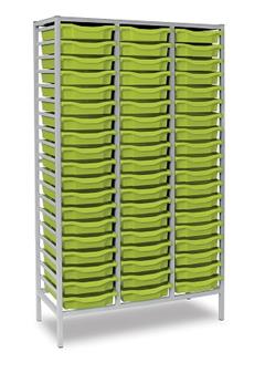 Tall Grey Metal Frame Plastic Storage - 3 Columns Lime Trays