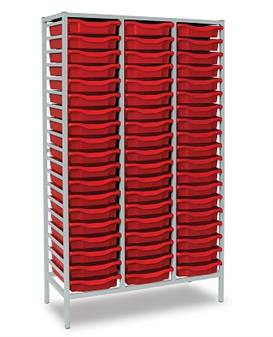 Tall Grey Metal Frame Plastic Storage - 3 Columns Red Trays