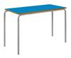 Crushed-bent framed trapezoidal classroom tables with a hardwearing 18mm MDF laminated top, which comes in a range of laminate finishes. Available in 6 heights to suit ages 3 through to adult (see below). This table/desk comes in 2 sizes, and will suit any school classroom, or other educational and learning environment. The table comes with either a rounded bullnose MDF edge in a choice of colours, and on a sturdy steel frame which comes in a choice of 4 different frame colours.