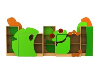 Tree Frog is a themed bookcases and storage which features easily idenitifiable images from the world outside our window. The units are 18mm MFC faced and edged on all sides in beech. The feature panels and doors are either MFC faced or painted in water based lacquers. Individual pieces can be purchased as well as a complete set. Perfect in any early years envionment - nursery, playgroup, creche and library.