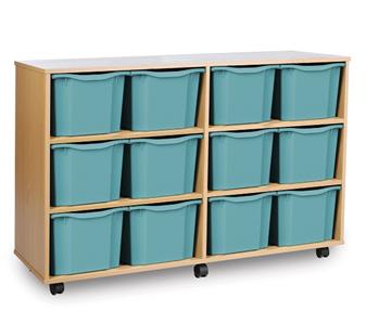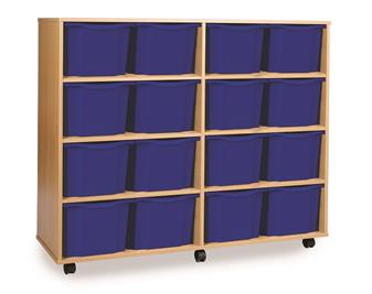 Wooden 16 Triple Tray Mobile Stirage Unit -Blue Trays