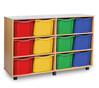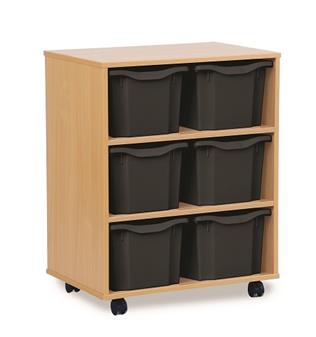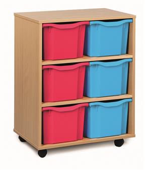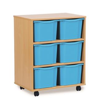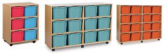 Fully assembled wooden tray storage units to take 6, 12 or 16 Monarch Triple plastic trays. These mobile units are suited to school, classroom, and other educational environments, and may also be used at home or in the office. The units are available a beech or maple carcass and a selection of coloured trays.