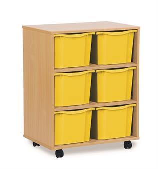 Wooden 6 Triple Tray Mobile Storage Unit - Yellow Trays