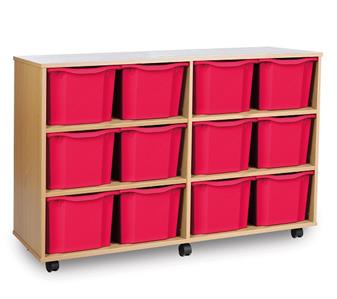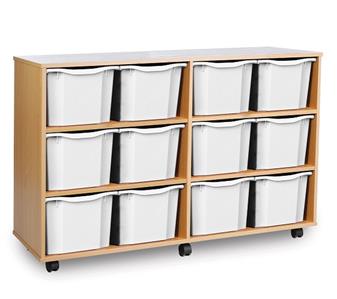 Wooden 12 Triple Tray Mobile Stirage Unit - Mixed Trays