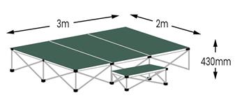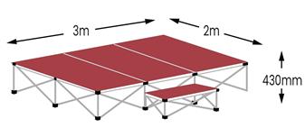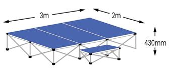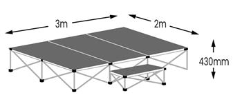 Note: This stage package is sold as standard with 400mm high risers to create a 430mm high stage. If you require this floor area with an alternative height stage, please contact the office to request a quote.