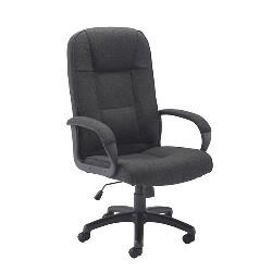 Next day delivery Fabric Executive chair in charcoal, with lock-tilt mechanism, and suitable for schools, offices, meeting rooms, etc.. The chair comes with a 5-star plastic base and castors as standard. Ideal managerial chairs for a range of office based applications. A strong, stable, and functional chair available at short notice with next day delivery. Available in charcoal fabric.