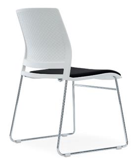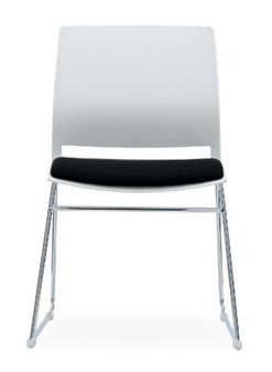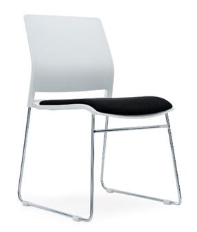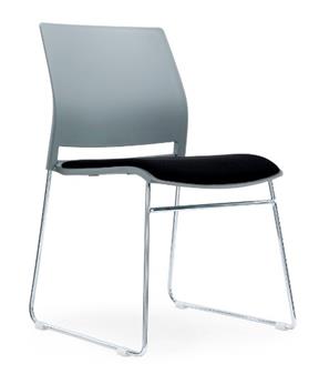 Verse A-Frame Stacking Chair With Seat Pad - ideal for conference halls, meeting rooms, waiting areas, and for educational environments. The chair comes with a metal A-frame in chrome finish, in a choice of black , grey or white plastic seat and back, and with black or grey fabric seat pad. The Verse chair comes with integral linking feet and is stackable 10-12 high from the floor. The chair requires simple push-fit assembly (no tools required). Minimum order 6 chairs.