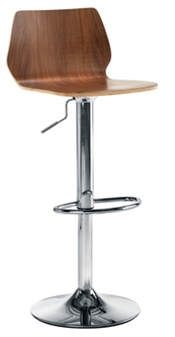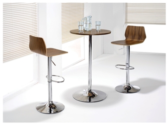Next day delivery walnut tall wooden cafe/bistro chair, suitable for canteen areas, cafe or leisure settings, eating areas, breakout areas, restaurant areas etc.. The chair has a durable, wipe-clean surface, a heavy chrome base, and an adjustable height mechanism and footring. Ideal furniture for restaurants, cafes, bistro areas, breakout areas, public sector organisations etc.. A multi-purpose chair available at short notice with next day delivery. Minimum order 2 chairs in this range.