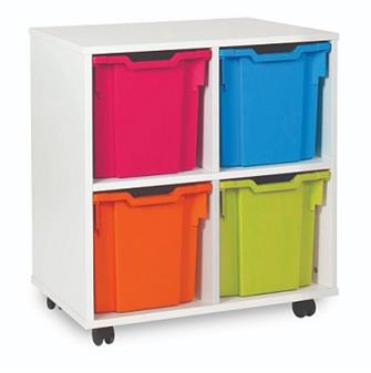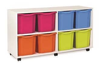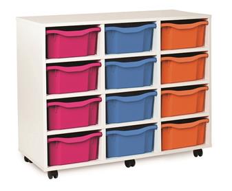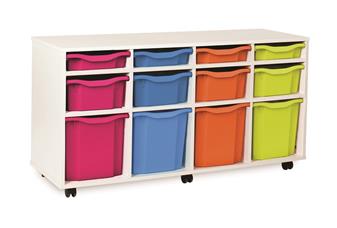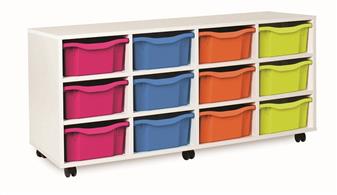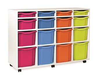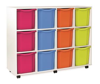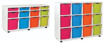 Fully assembled white tray mobile storage range available with Monarch trays. These tray storage units come with double, triple & quad trays in various size units as well as a combination tray unit of 12 or 16 trays. Perfect in educational environments including classrooms and libraries.