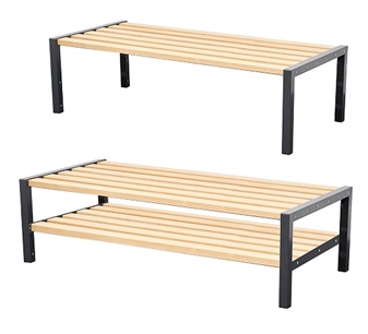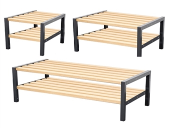Suitable for cloakroom areas in classrooms, sports and games rooms, changing rooms, and other settings. Available as one-tier seat units with seat only, or two-tier with seat and shoerack. The double sided cloakroom benches are available in four widths and come in 3 heights - infant, junior, and adult heights. Each unit comes fully assembled and comes with a 5 year manufacturer's guarantee.