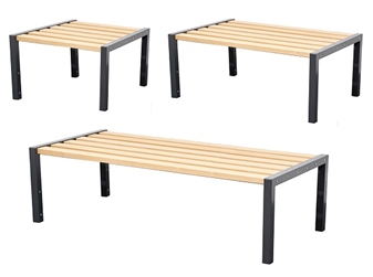 School Wooden Cloakroom Benches - Double Sided, are made with tough steel frames which are powdercoated in anti-bacterial charcoal grey paint, and come with solid beech slats.