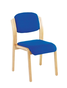 Next day delivery woodframe stacking chair, suitable for reception areas, conference rooms, the meeting room, etc.. and available in a choice of blue or charcoal fabric. Ideal seating for the school classroom, lecture room, office, training room, waiting room, public sector organisation etc.. A multi-purpose chair available at short notice with next day delivery. Minimum order 2 chairs.