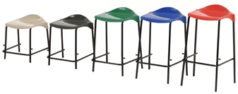 WSM Stool, for use in schools, colleges, in the laboratory, technology classroom, and other educational or work settings. This stacking stool is made with a round tube steel frame and moulded polypropylene seat. The stools come in a range of 5 sizes to suit any environment. Stools are also available with steel feet for use on highly abrasive non-slip flooring. The stacking design keeps the seats apart to avoid scratching. There is a minimum order of 4 chairs in this range but price breaks for larger orders. The stool comes with a 5 year guarantee.