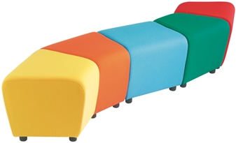 Zig Zag Reception Seating for breakout, waiting, reception or hospitality areas. The seats come as angled or square stools which together provide endless possibilities and seating configurations as well as the large ying with and without back, round and cross making interesting breakout areas. The seating is manufactured with a hardwood and plywood timber frame, black nylon feet, and deep foam seat. The chairs are available in a large choice of fabric colours. Ideal seating for reception areas in the school, hospital, or in waiting room areas.