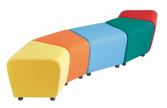 Zig Zag Reception Seating for kids, perfect for nursery school soft seating areas & junior school breakout areas. The seats come as angled, round, square and rectangular stools which together provide endless possibilities and seating configurations. The seating is manufactured with a hardwood and plywood timber frame, black nylon feet, and deep foam seat. The chairs are available in a large choice of fabric colours.